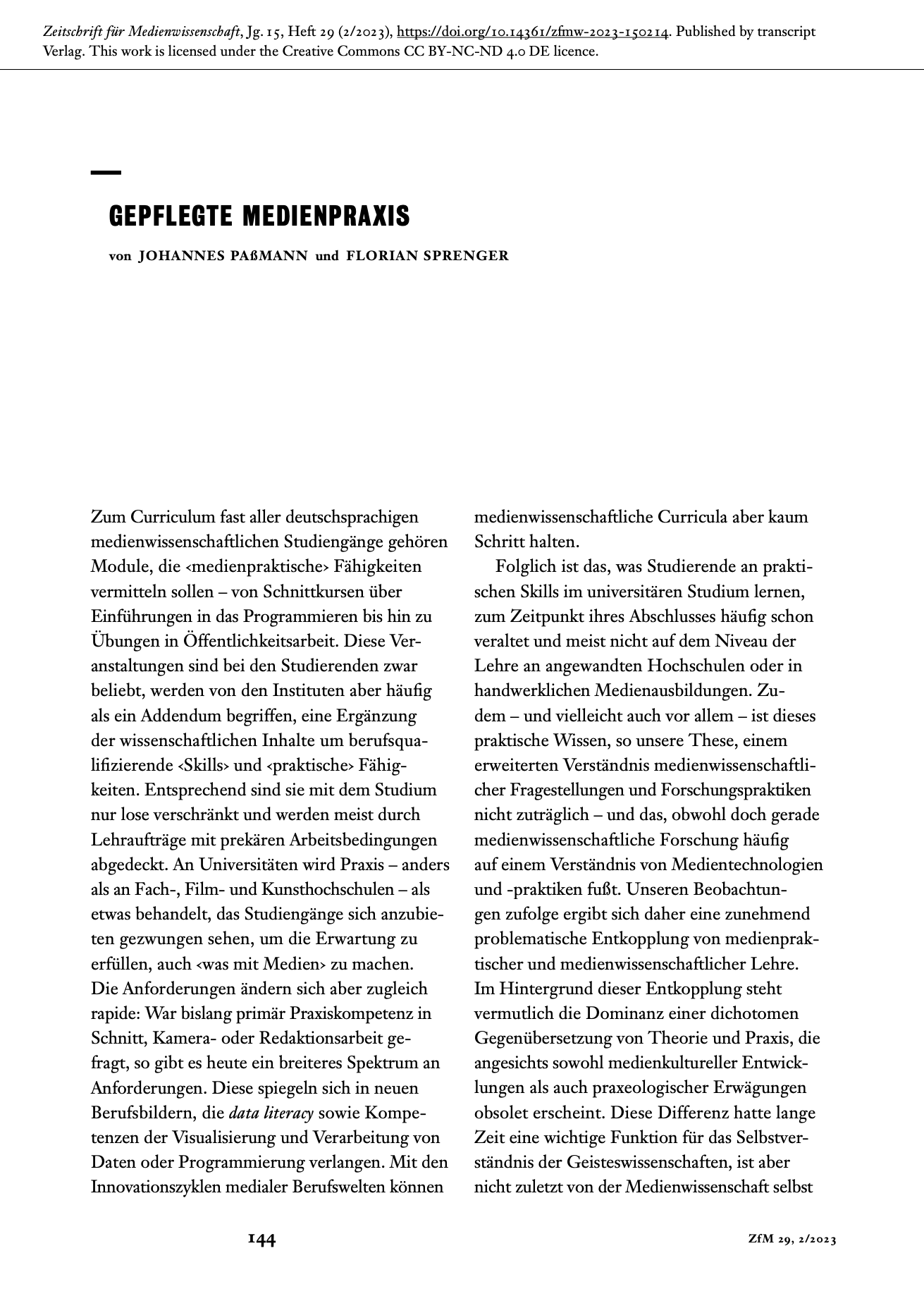 Gepflegte Medienpraxis