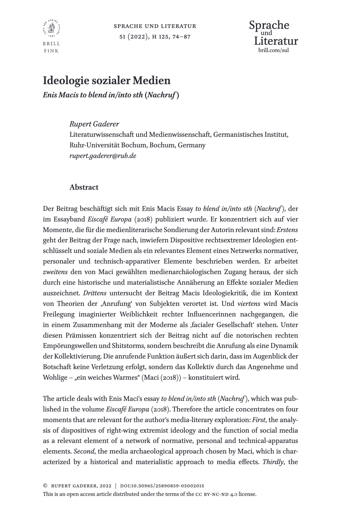Enis Macis to blend in / into sth (Nachruf)